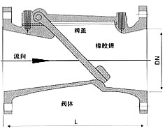 橡膠瓣止回閥主要由閥體、閥蓋及橡膠瓣三種主要零件組成。其中橡膠由鋼板、鋼棒及強(qiáng)化尼龍布做襯底,外層披覆橡膠制成,閥瓣開關(guān)壽命可達(dá)100萬次。該閥采用全流面積式設(shè)計(jì),具有水冰損失小,不易堆積雜物,維修簡便等特性。該閥主要適用于給排水系統(tǒng),可安裝于水泵出水口處,以防止倒流及水錘對泵損害。訪閥還可安裝在蓄水池進(jìn)出水管的旁通管上,以防止池水倒流至給水系統(tǒng)中。