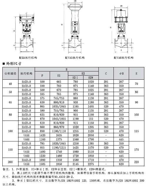 備注:該閥也可配用VAS和VP執(zhí)行機構