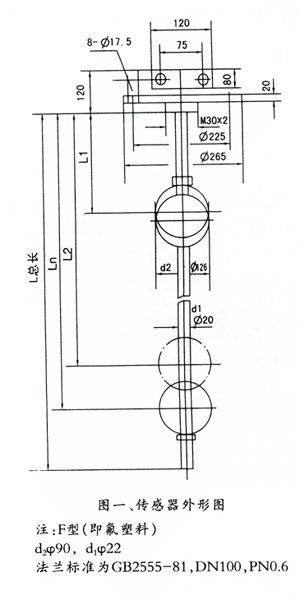 4、由于受鐵路運(yùn)輸?shù)南拗疲笥?m以上采取分段裝箱,安裝時(shí)由用戶自行焊接,焊接后需將焊縫銼平正,并做好水壓試驗(yàn)(壓力小于0.6MPa)確定不漏方可合使用,F(xiàn)型的傳感器還須將隨箱來(lái)的氟塑料套管套上并固定;或用戶自行解決運(yùn)輸問(wèn)題。 |