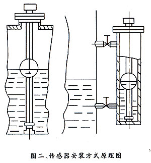 3、傳感器在被測(cè)容器上,其安裝方法見(jiàn)圖二,傳感器下端好與容器底部固定牢。